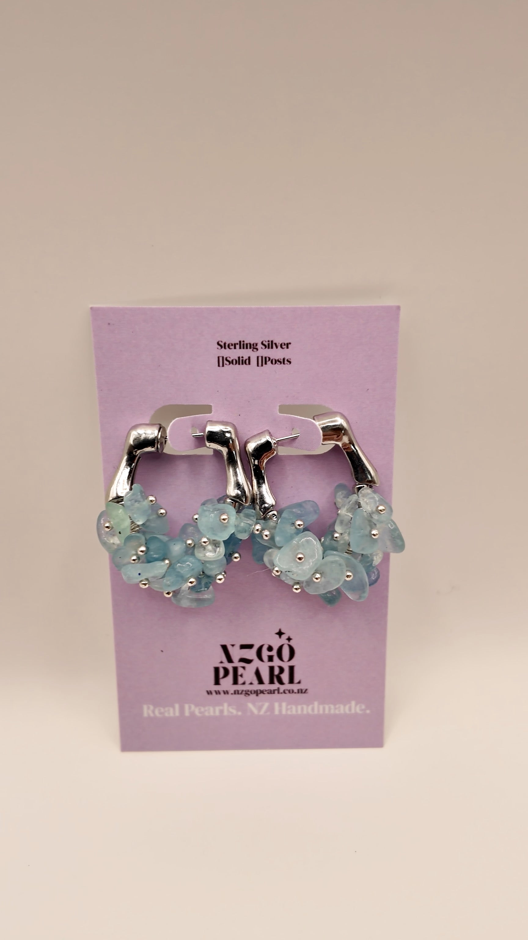 Materials: Natural aquamarine stone chips, solid sterling silver posts.