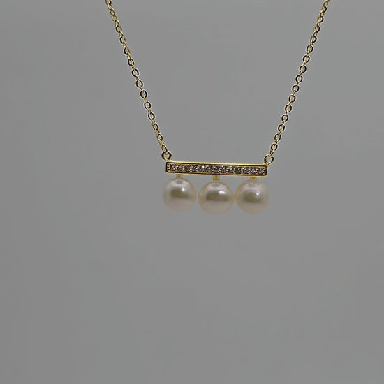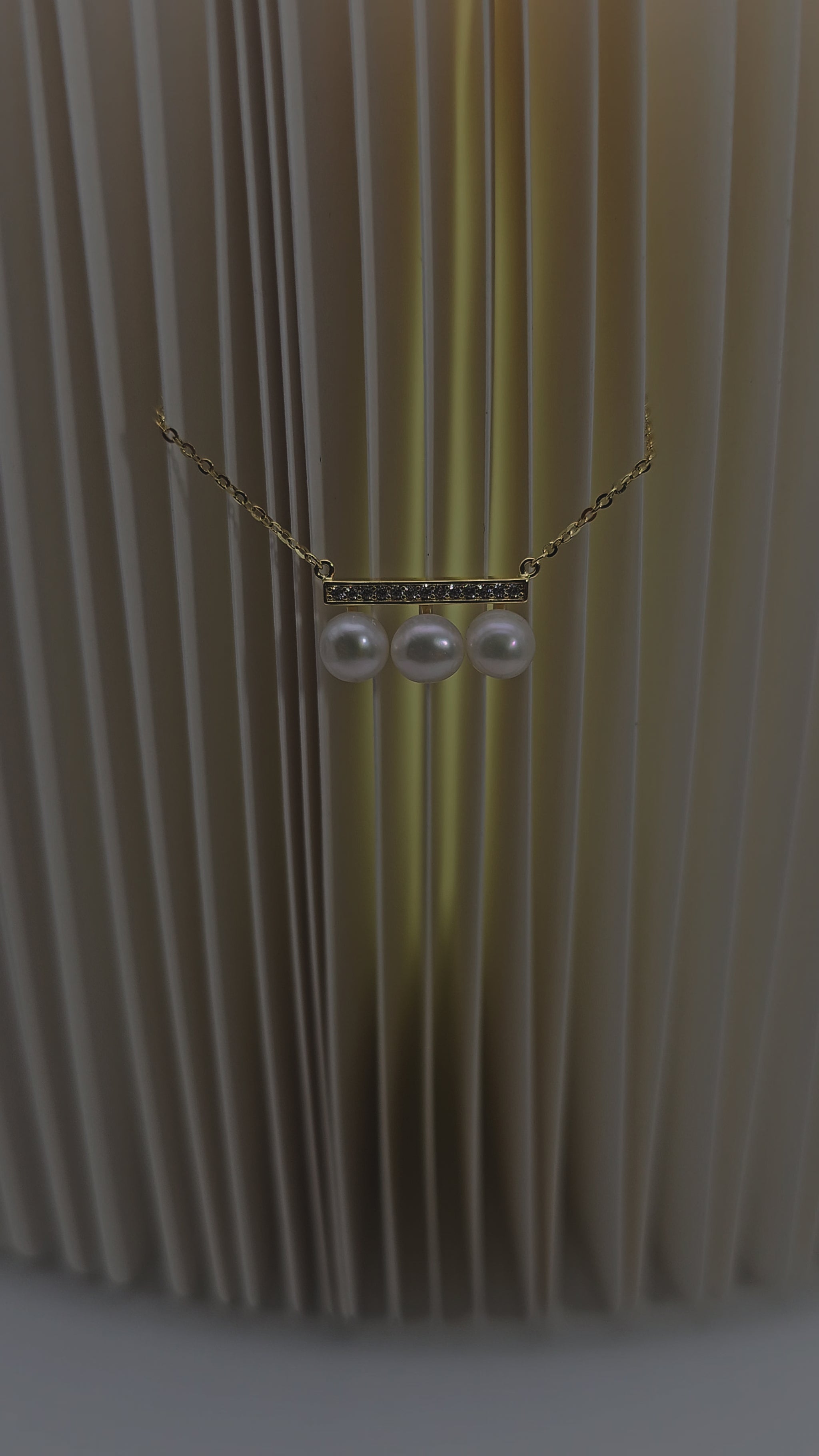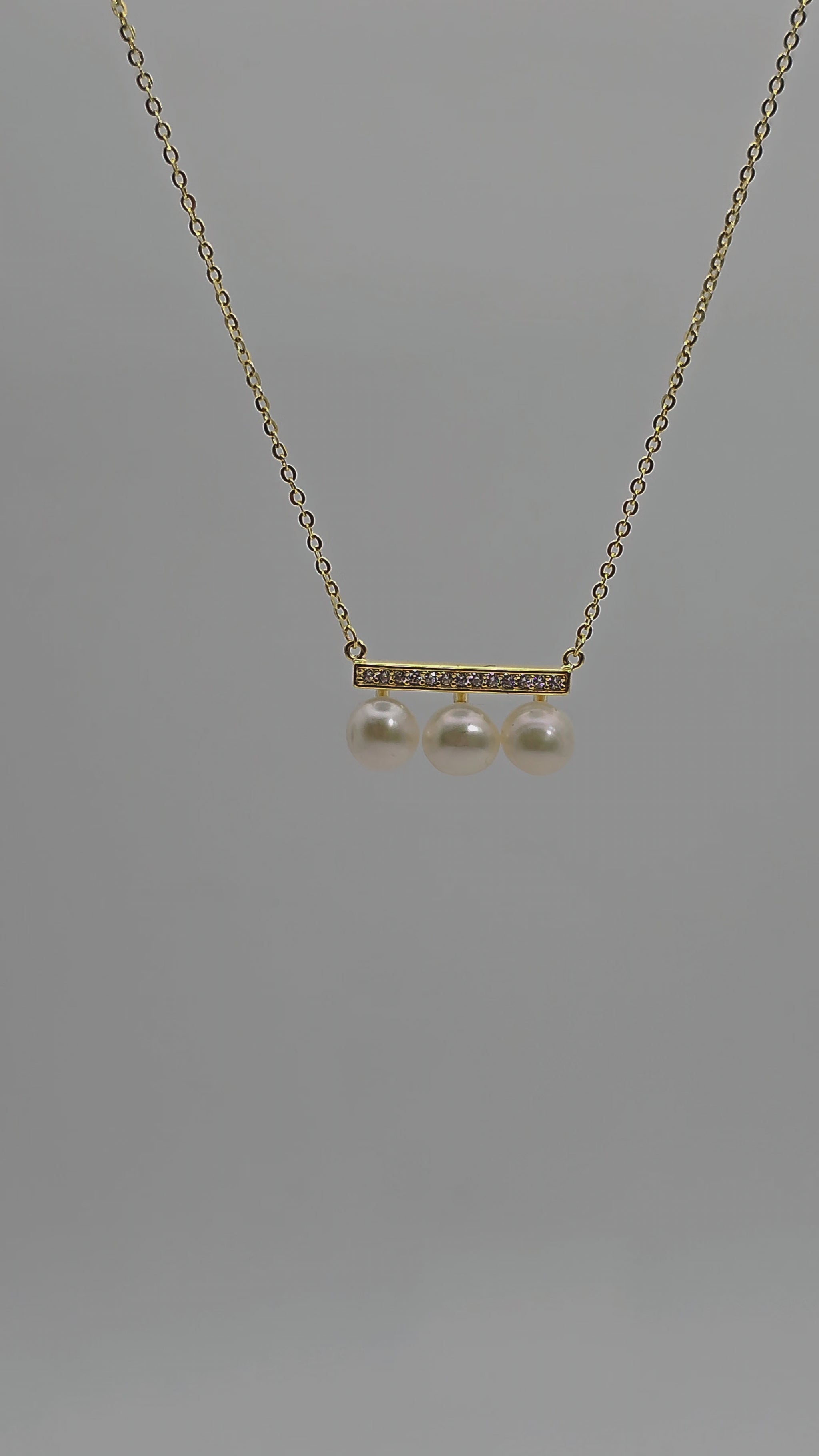 Balance Beam Necklace – Trio Pearls on Solid Sterling Silver