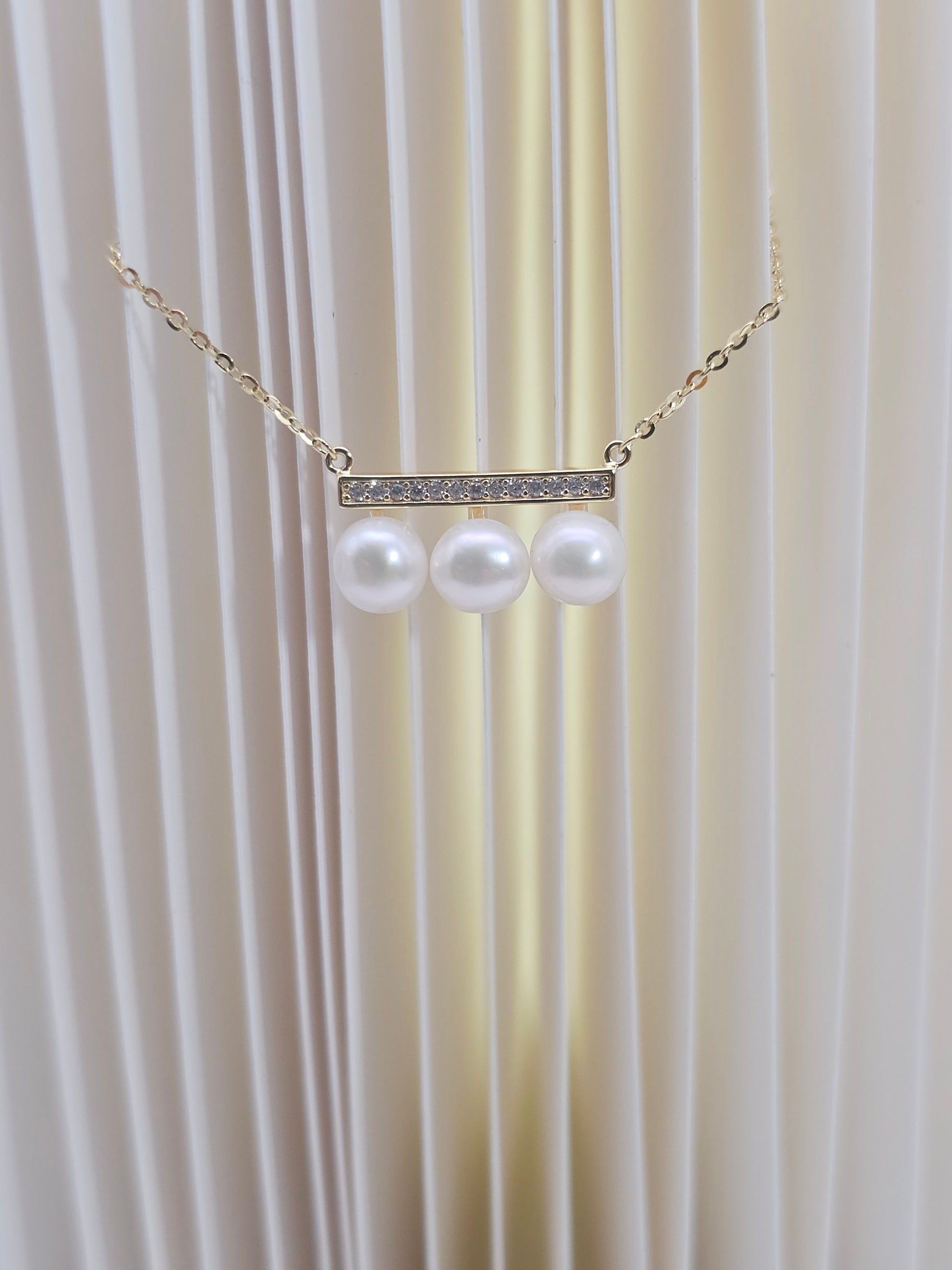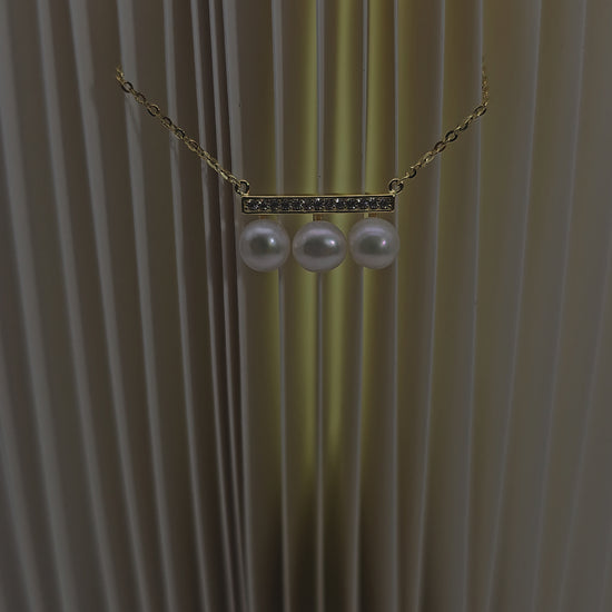 Graceful symmetry meets everyday elegance in the Balance Beam Necklace. Featuring three flawless 5.5mm freshwater pearls suspended beneath a sleek CZ-set horizontal bar, this design symbolizes harmony and poise. Crafted in solid sterling silver and finished with a radiant gold plating, it’s a piece that effortlessly blends modern minimalism with timeless luxury.