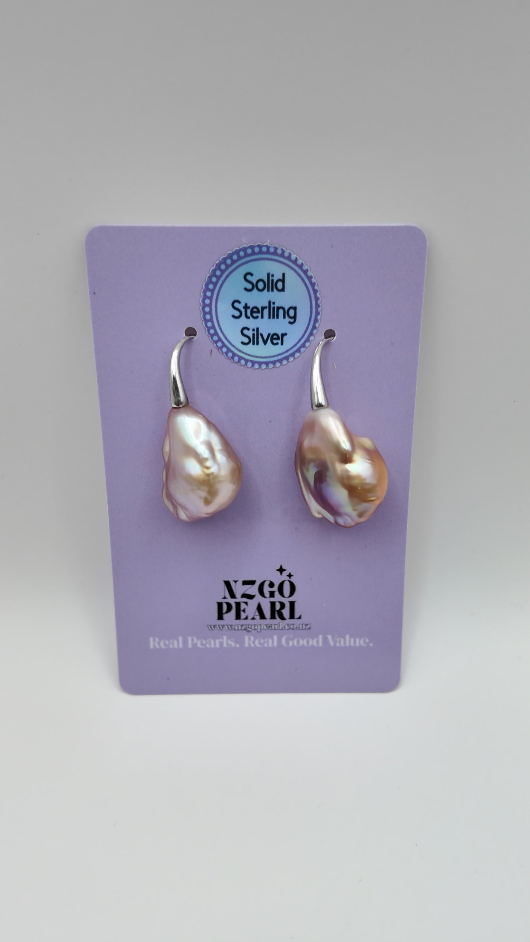 Baroque Pearl Hook Earrings – Solid Sterling Silver