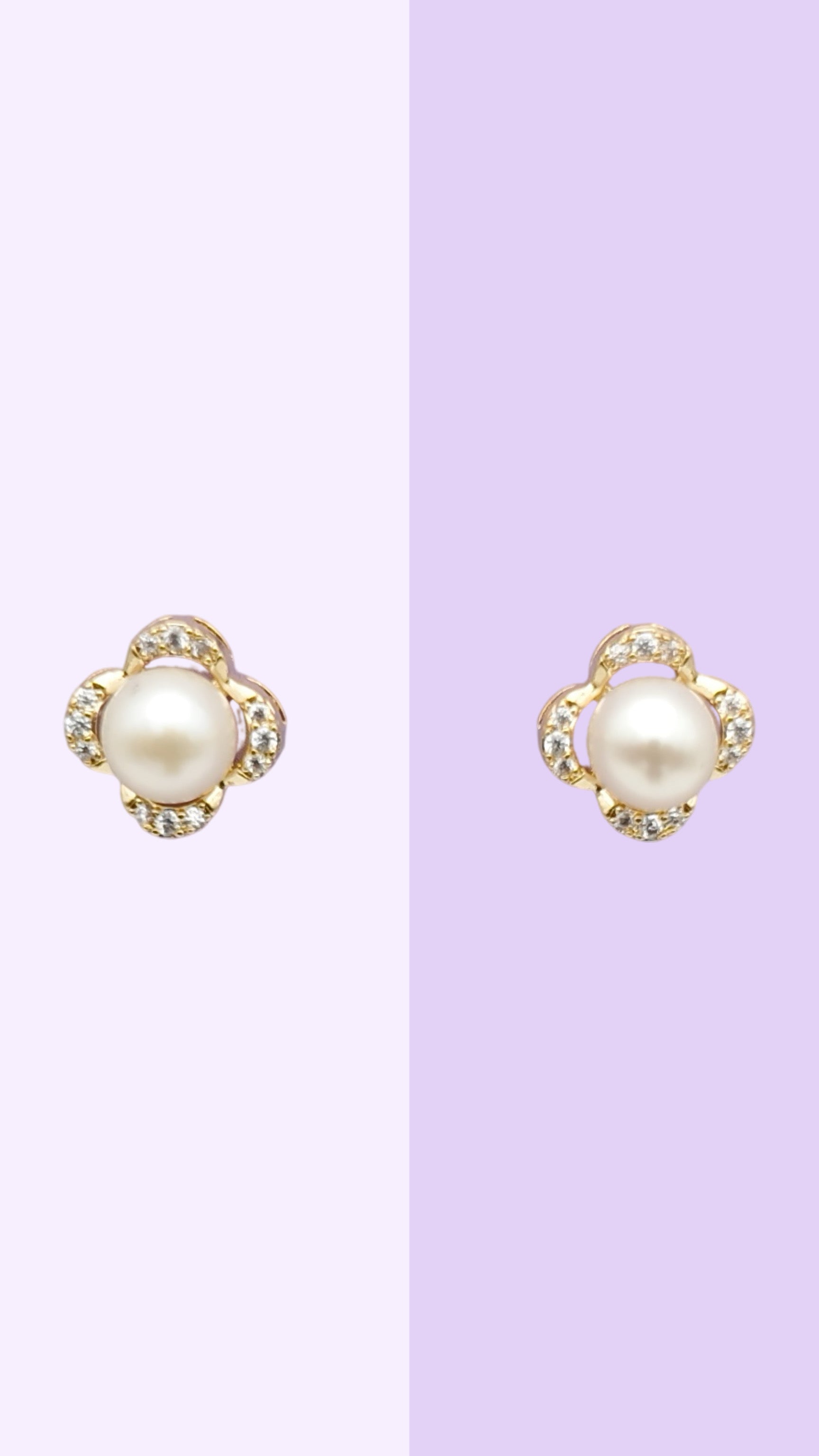 Delicate, feminine, and timeless — our Bloom Pearl Stud Earrings feature a lustrous freshwater pearl framed by a four-petal floral design adorned with sparkling cubic zirconia. Available in gold and silver tones, they bring an elegant radiance to your everyday style or special moments.