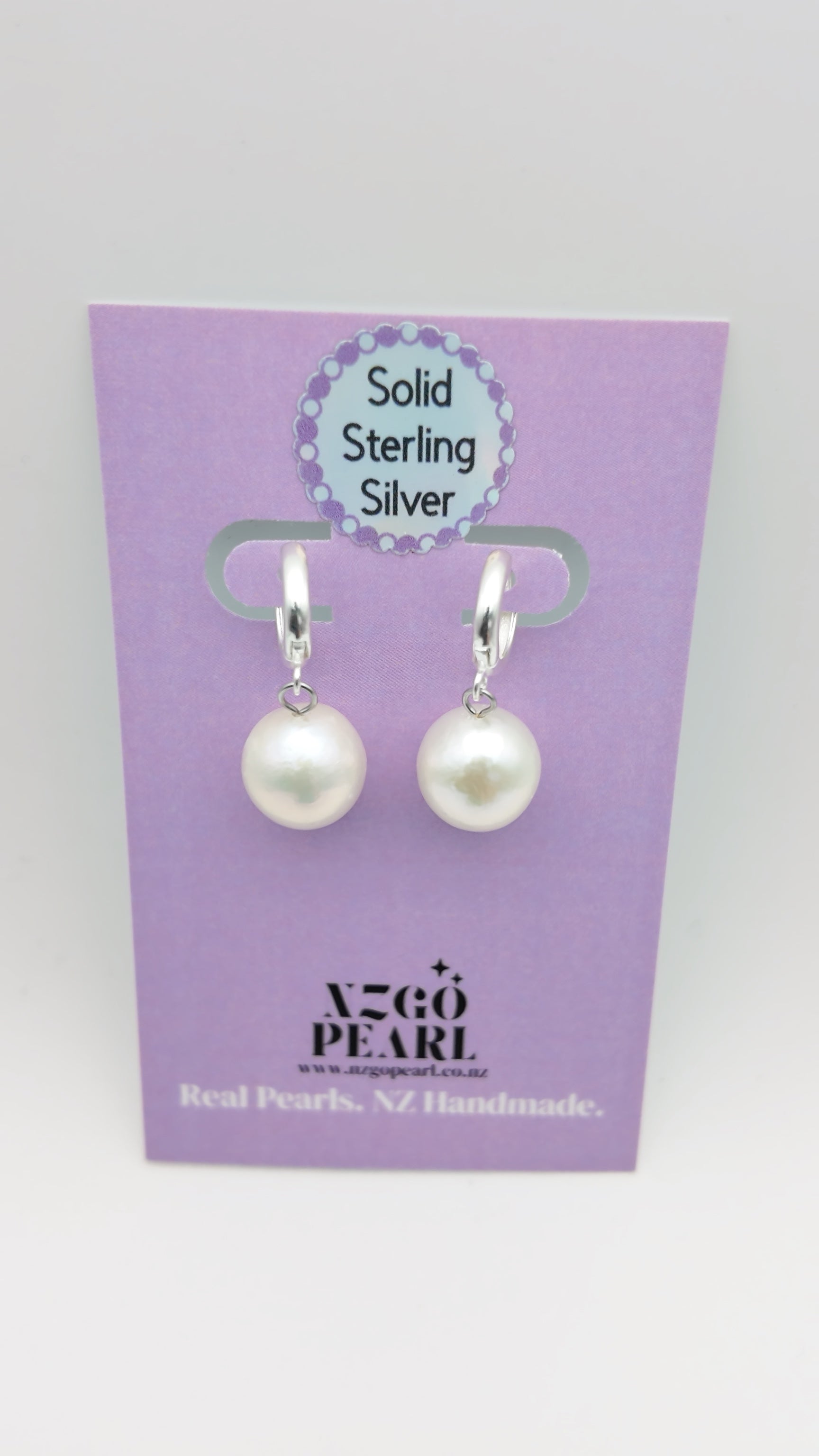 Classic Pearl Huggie Earrings – Solid Sterling Silver