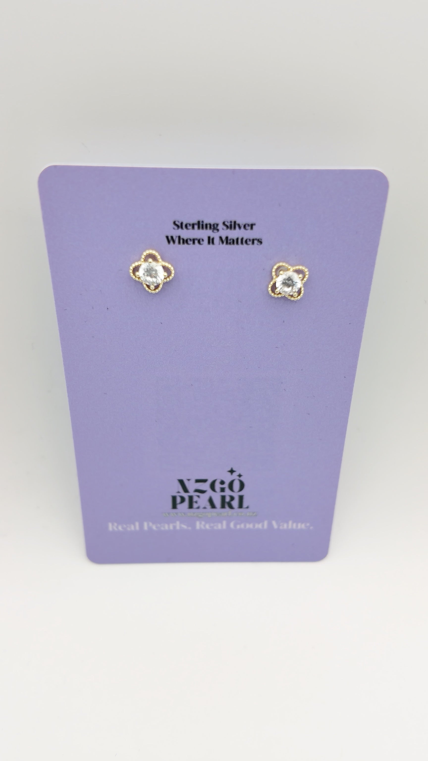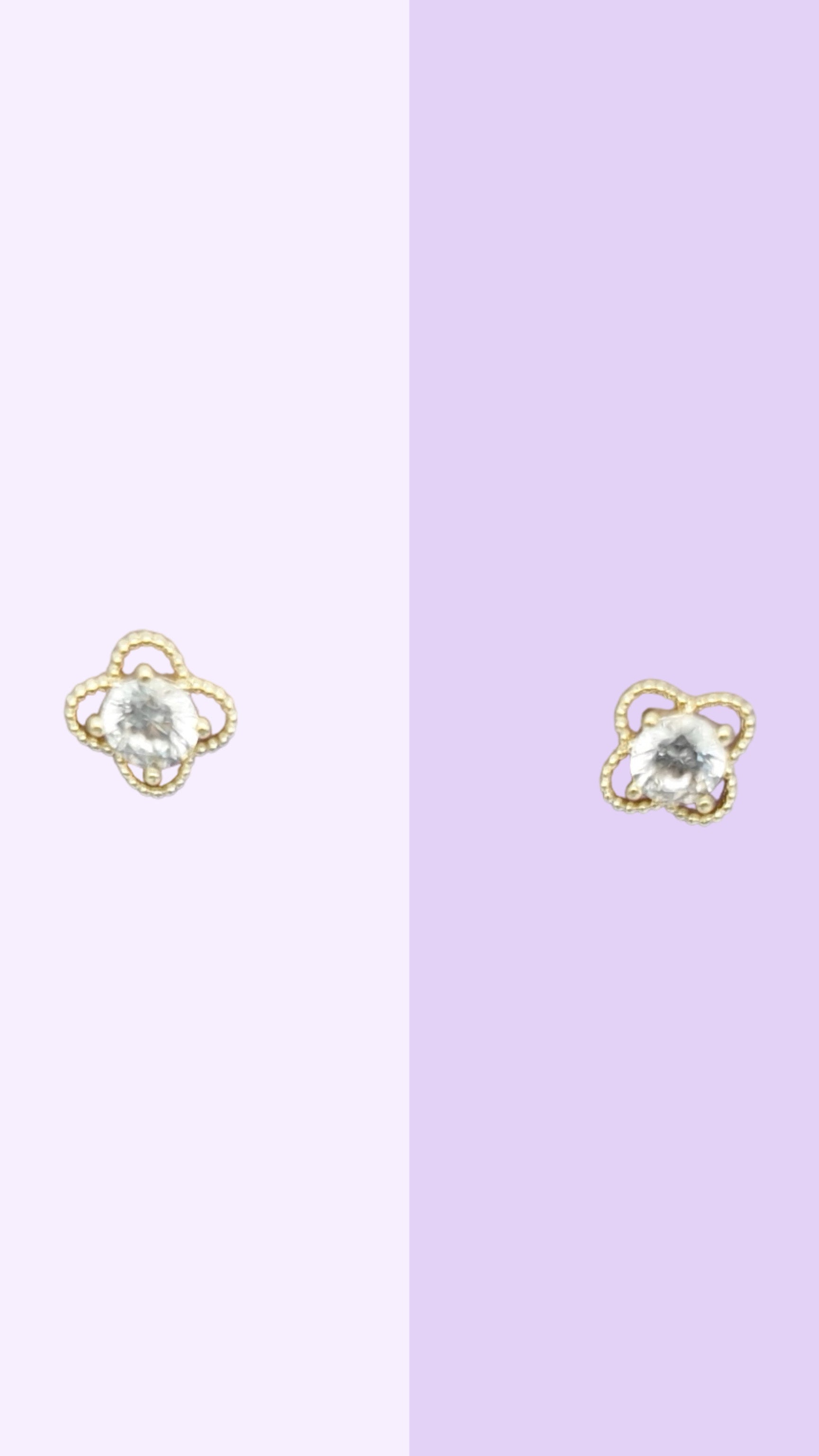 A dainty crystal sits at the centre of a soft four-petal shape, finished with tiny beaded gold detailing that adds just the right amount of texture. These studs are small, elegant, and easy to pair with anything — perfect for customers who love a subtle touch of sparkle.