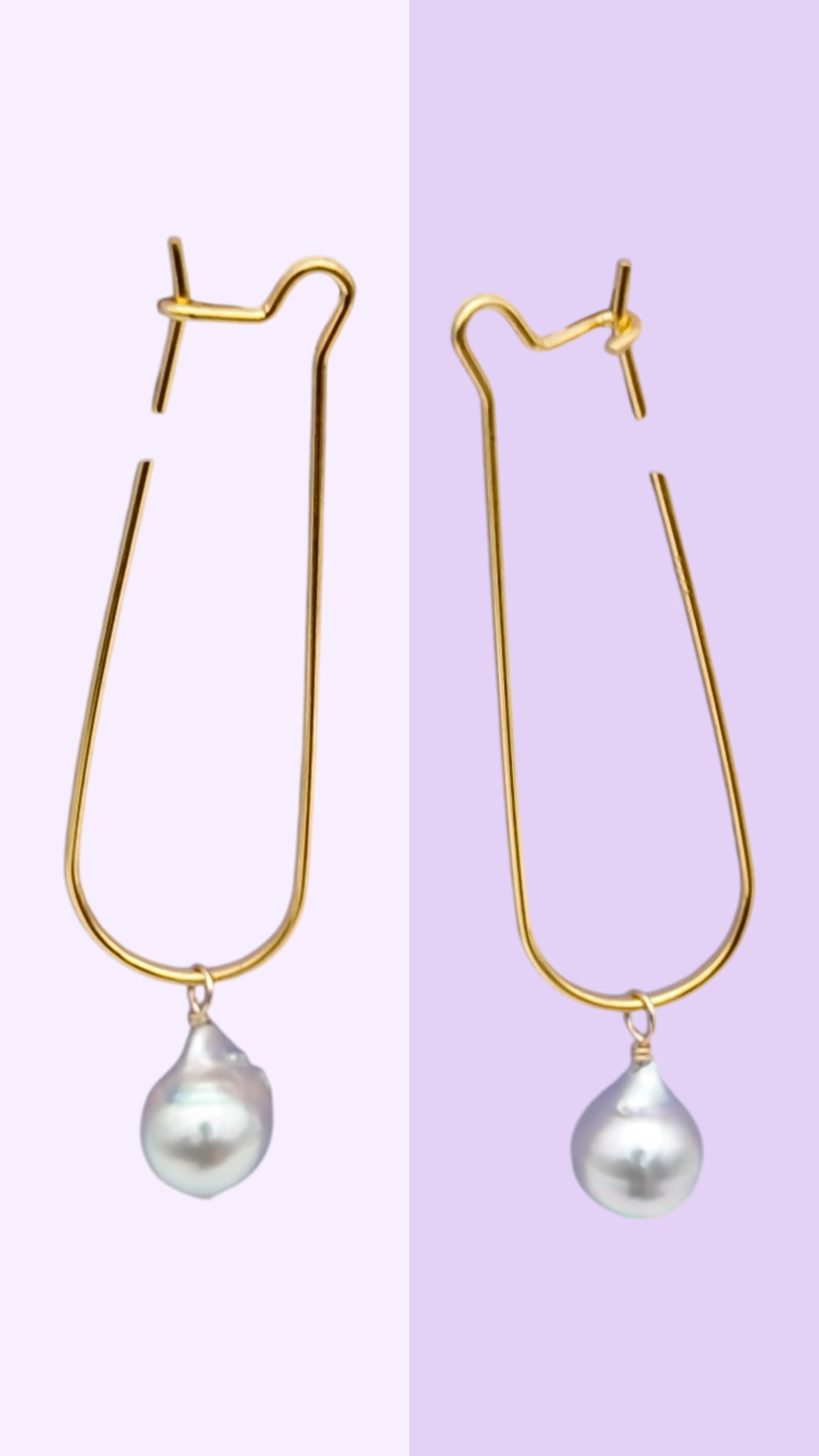 A refined, modern take on classic pearl earrings. Each pair features lustrous Japanese Akoya pearls suspended from an elegant elongated frame. The clean, minimalist silhouette complements the natural glow of the pearls, creating a look that’s effortless, graceful, and quietly luxurious. Made with solid sterling silver under high-quality gold plating for comfort and durability.
