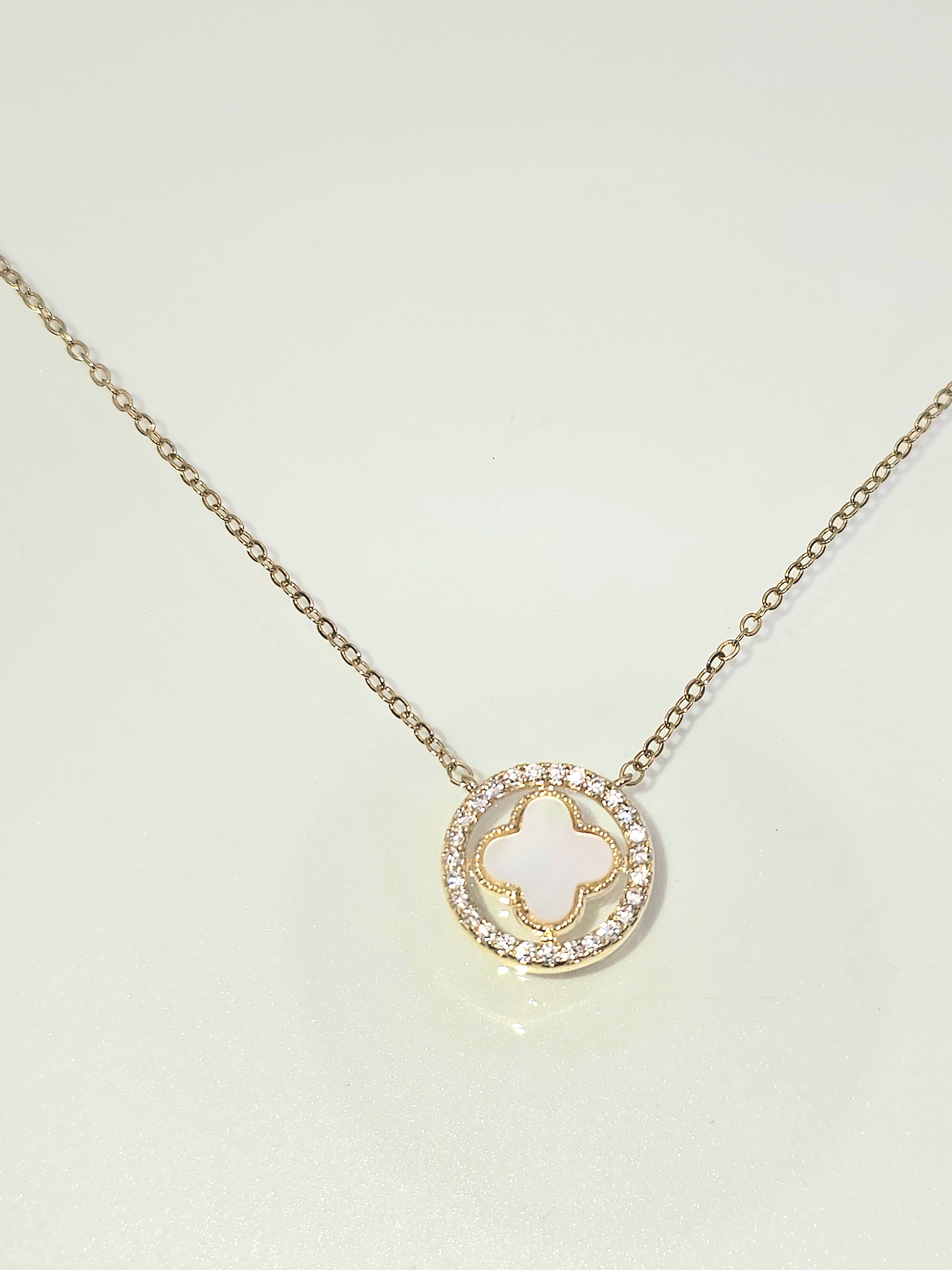 Lumière Clover Necklace – Mother of Pearl in CZ Halo