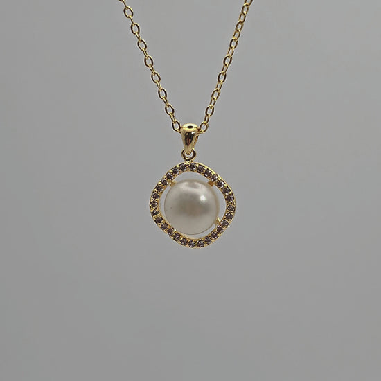 A luminous centrepiece with timeless appeal, the Lumière Halo Pendant Necklace features a perfectly round freshwater pearl set in a delicate halo of sparkling cubic zirconia. Suspended on a fine gold-plated or silver-plated chain, this necklace blends classic elegance with everyday wearability. Whether worn solo or layered, it catches the light beautifully with every move.