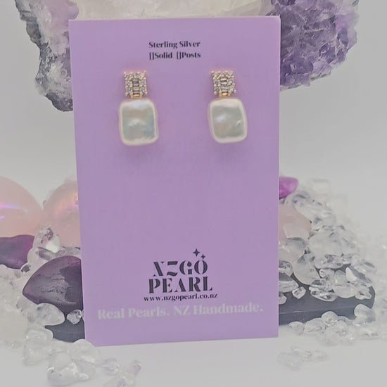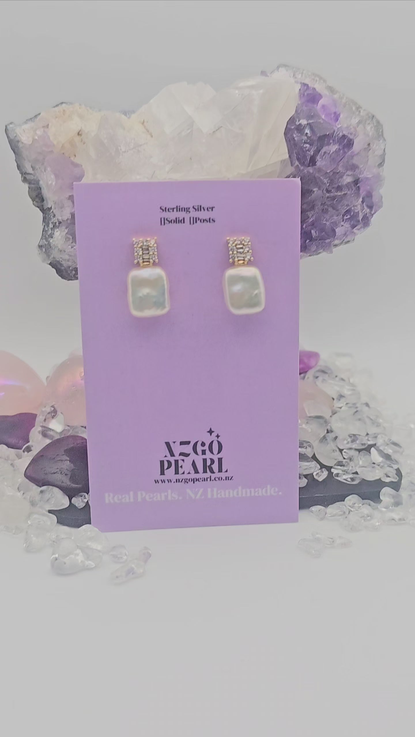 Modern geometry meets timeless elegance in our Luxe Baguette Pearl Studs. Featuring rectangular freshwater keshi pearls with soft iridescence, paired with a dazzling triple baguette CZ setting, these earrings are a confident statement of elegance and structure.