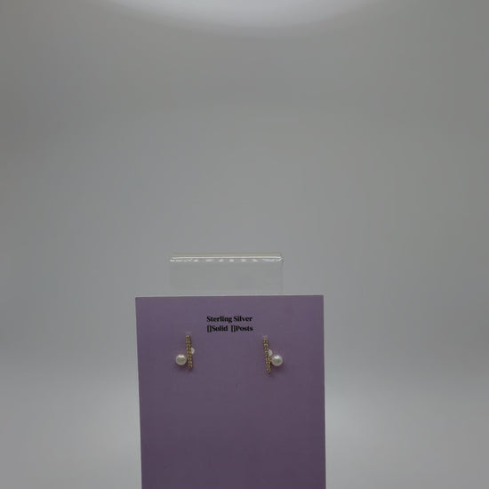 Minimalist 3mm Pearl & Crystal Bar Earrings