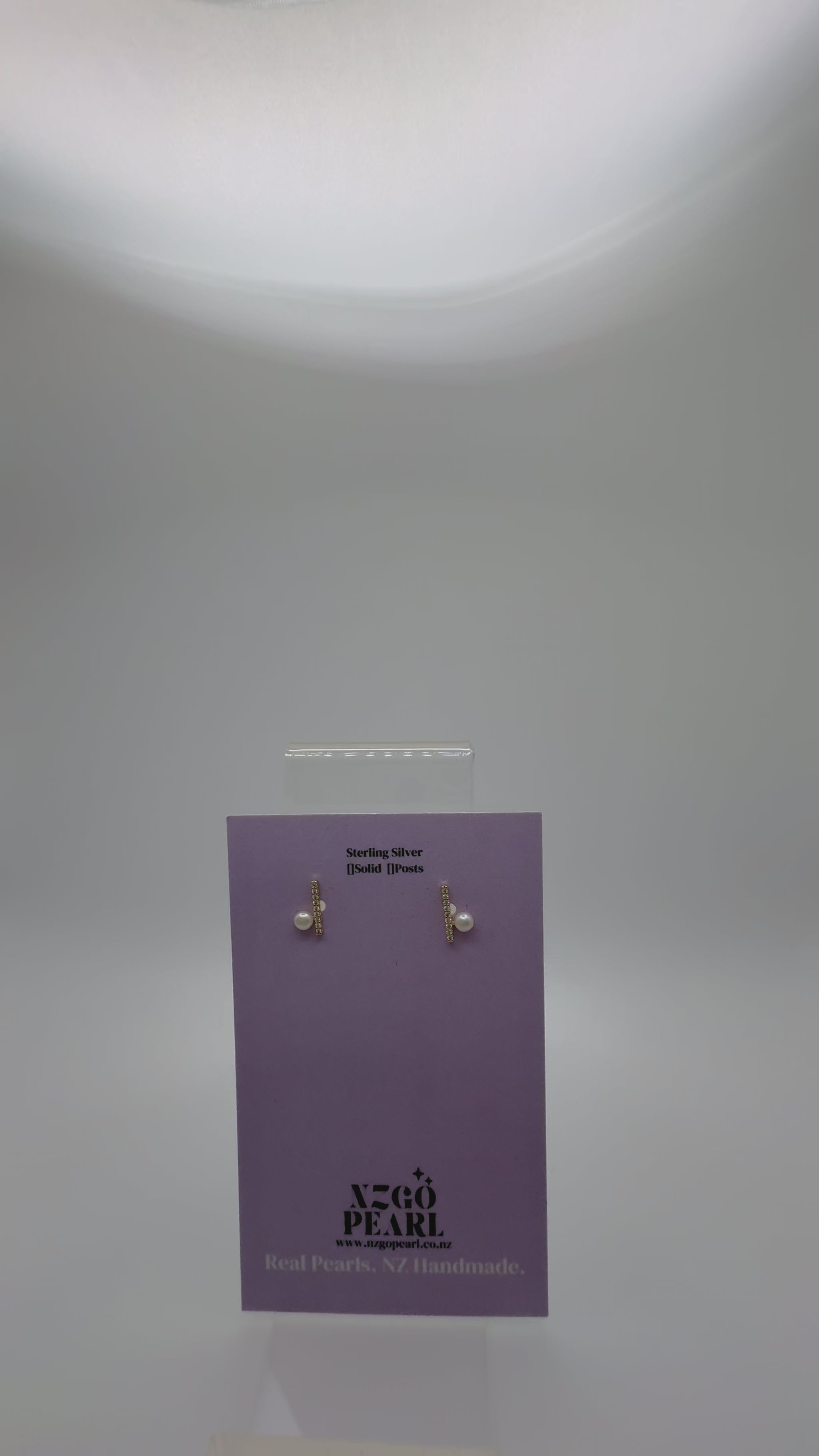 A stunning fusion of precision and elegance, these earrings feature a sleek crystal-studded bar paired with a delicate 1mm freshwater pearl—a rare and intricate detail that requires exceptional craftsmanship due to its size. The minimalist yet refined design makes these earrings a versatile staple for both everyday wear and special occasions.