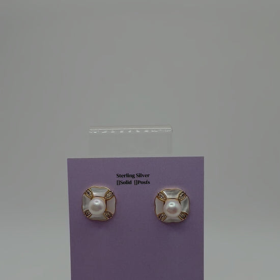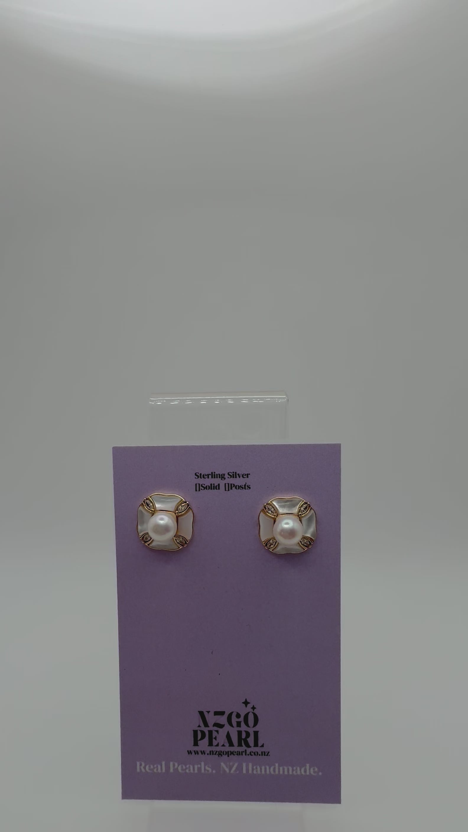 A timeless blend of sophistication and elegance, these Mother of Pearl earrings feature a lustrous freshwater pearl at the centre, framed by delicate mother of pearl inlays. The intricate design is accented with sparkling cz stones for a subtle touch of brilliance, creating an elegant and refined look.