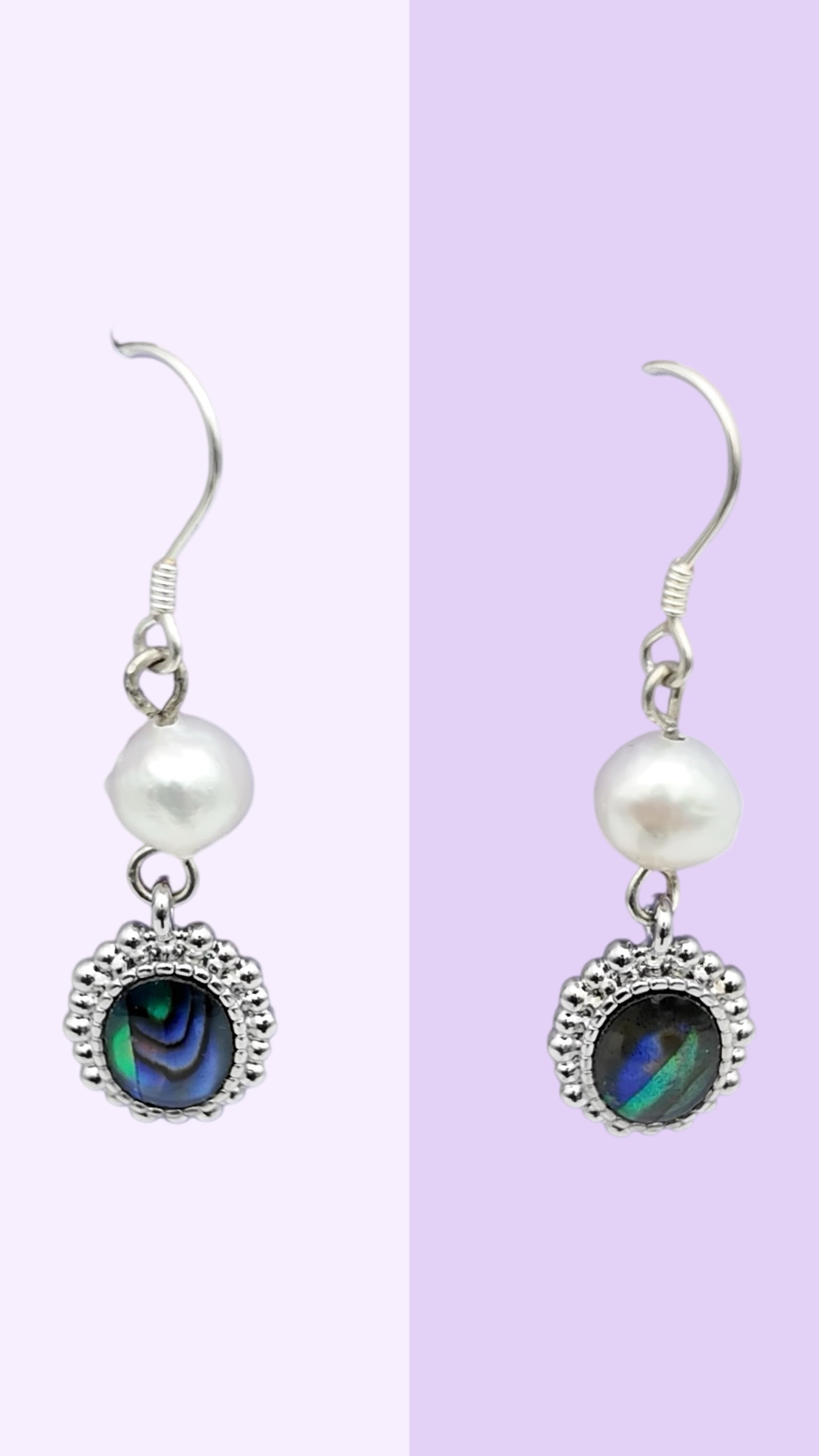 Featuring real freshwater pearls and genuine New Zealand paua shell — each pair is naturally one of a kind.