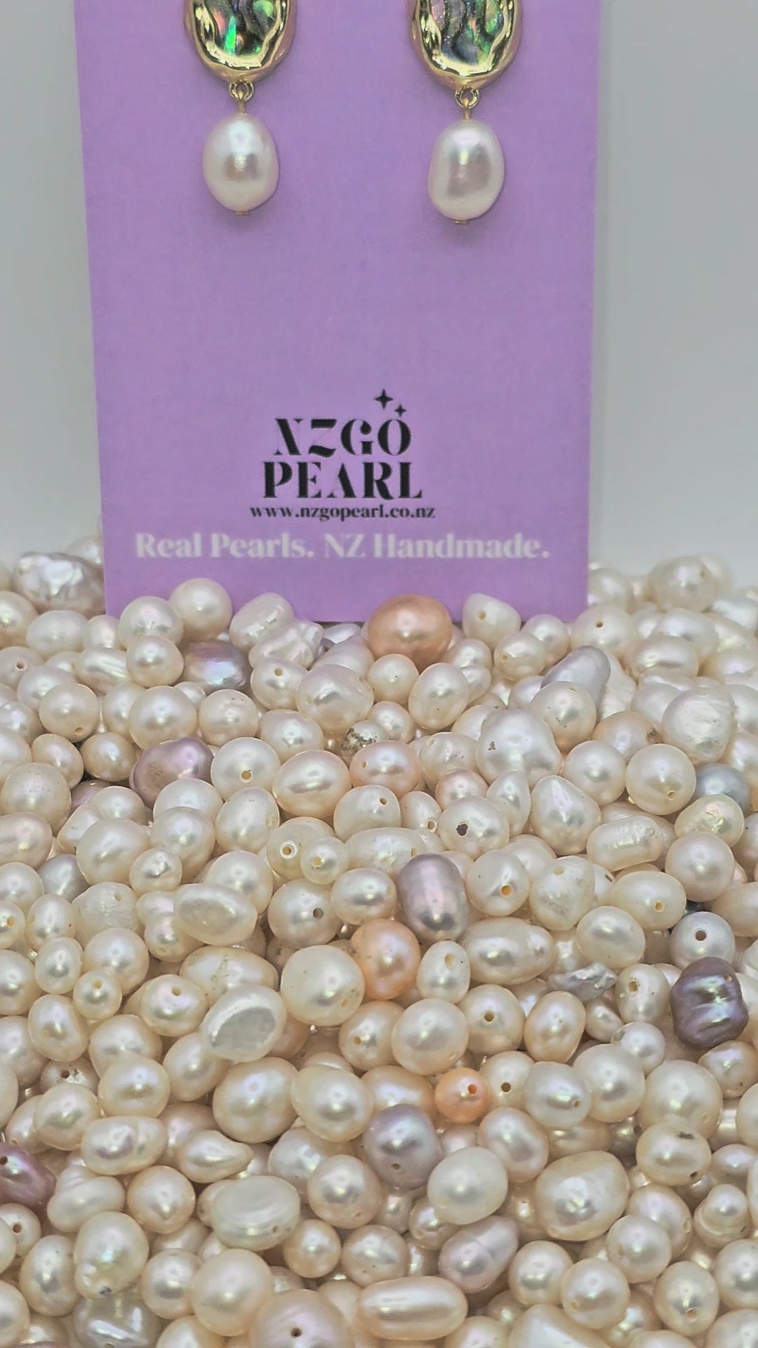 Our Paua & Pearl drop earrings bring together NZ Paua’s natural shimmer and the soft glow of real freshwater pearls.