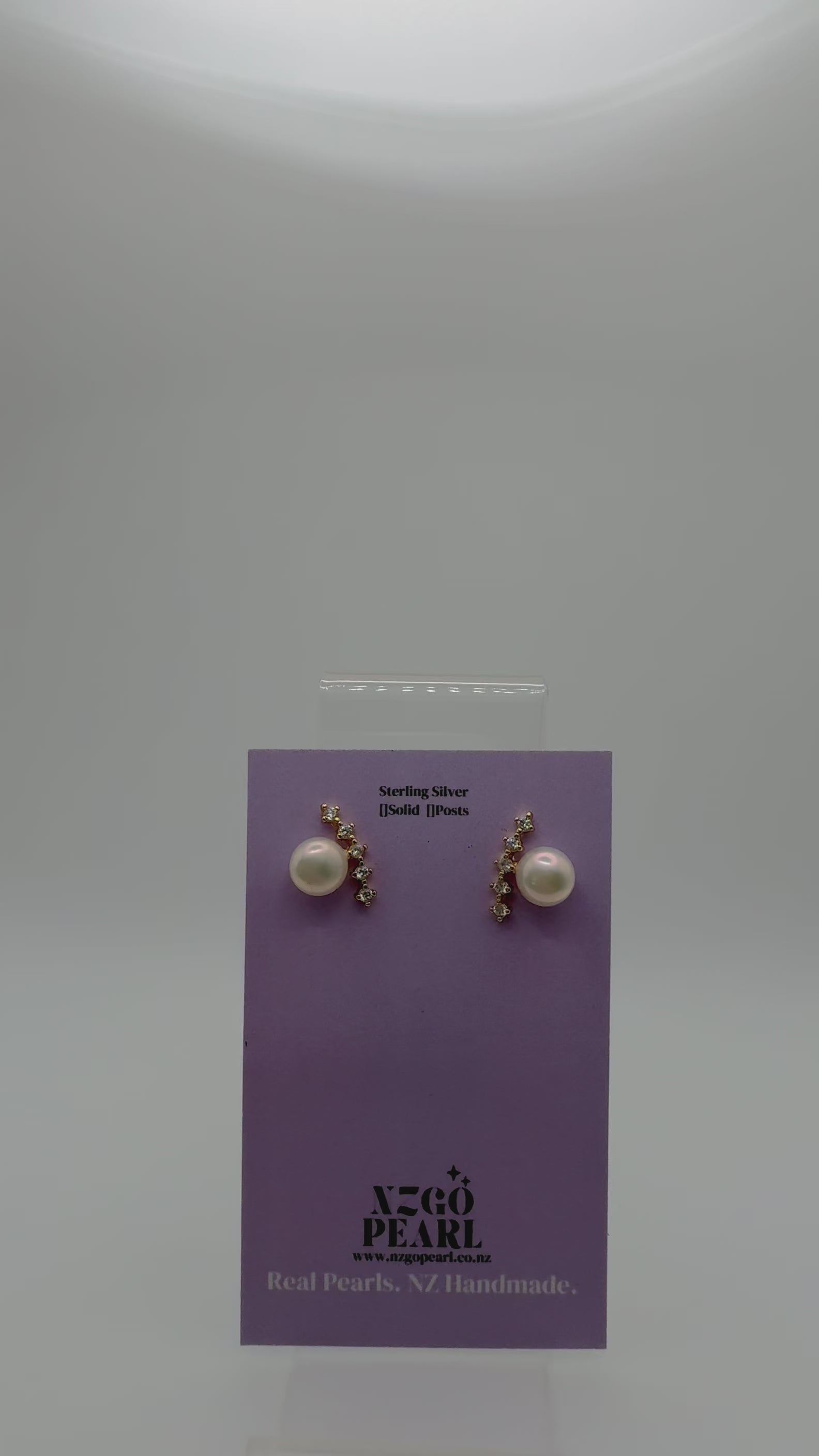 Pearl & CZ Climber Stud Earrings – Elegant Sparkle