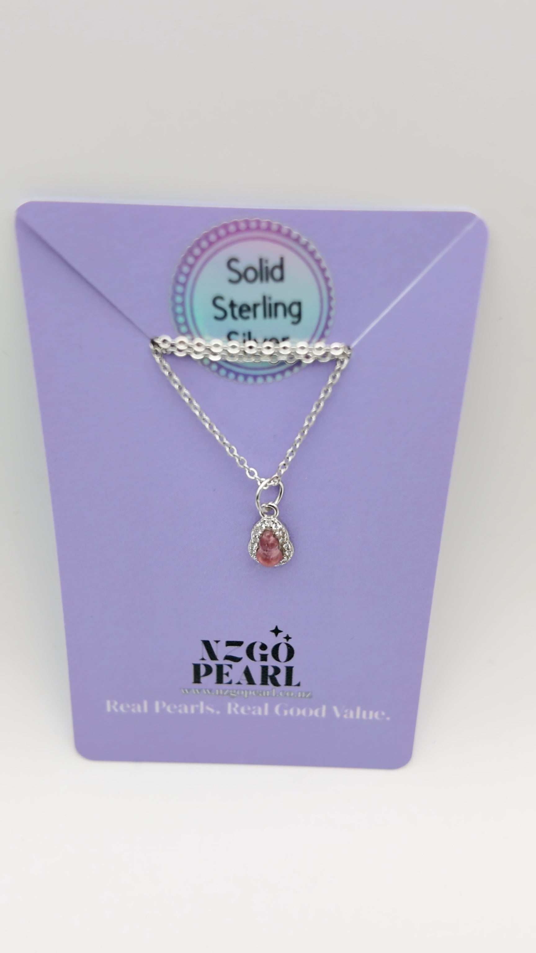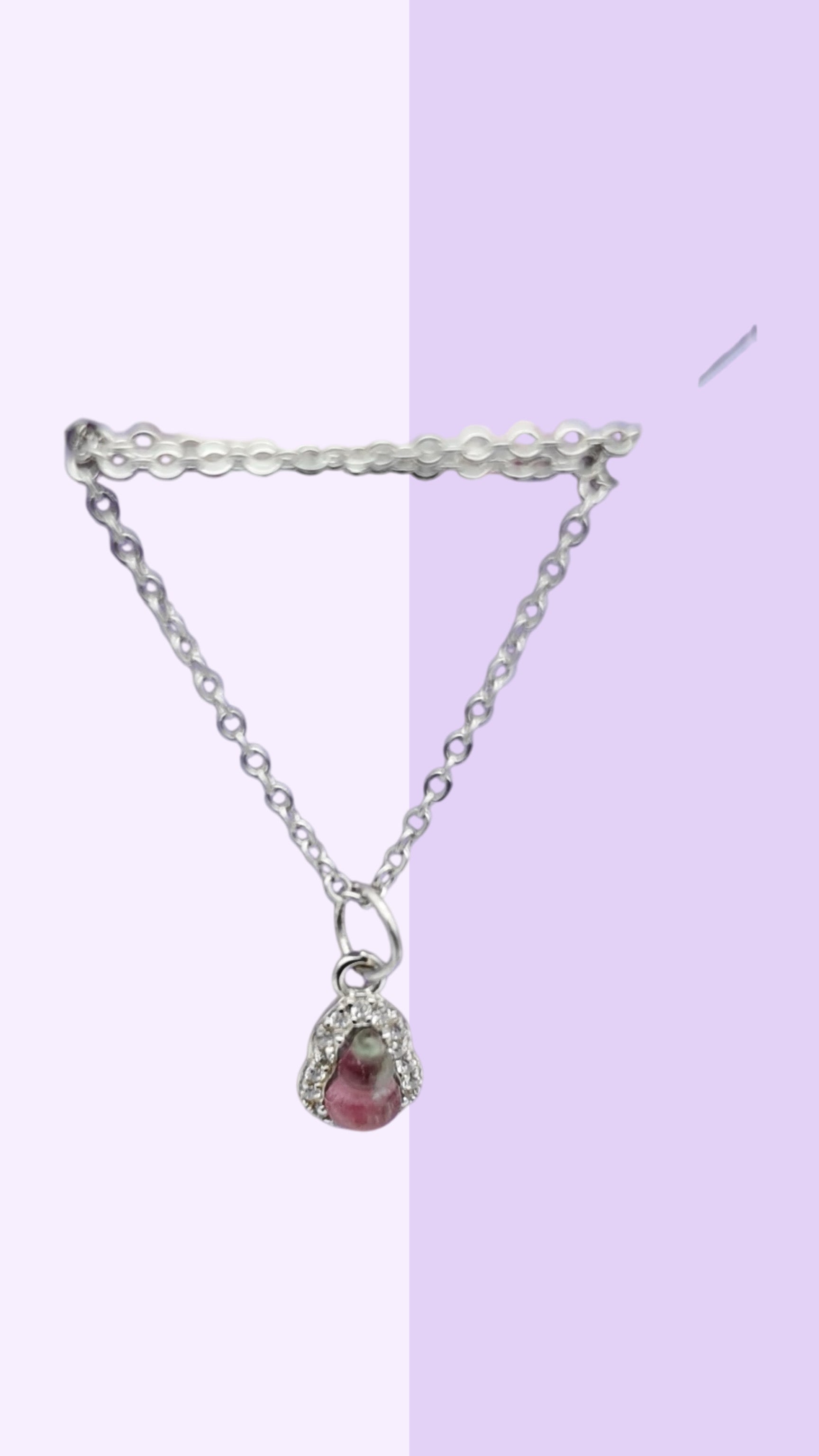 A tiny carved charm featuring a soft pink crystal set inside a sparkling sterling silver frame. Each piece carries gentle, calming energy and adds a meaningful touch to any necklace or bracelet stack.