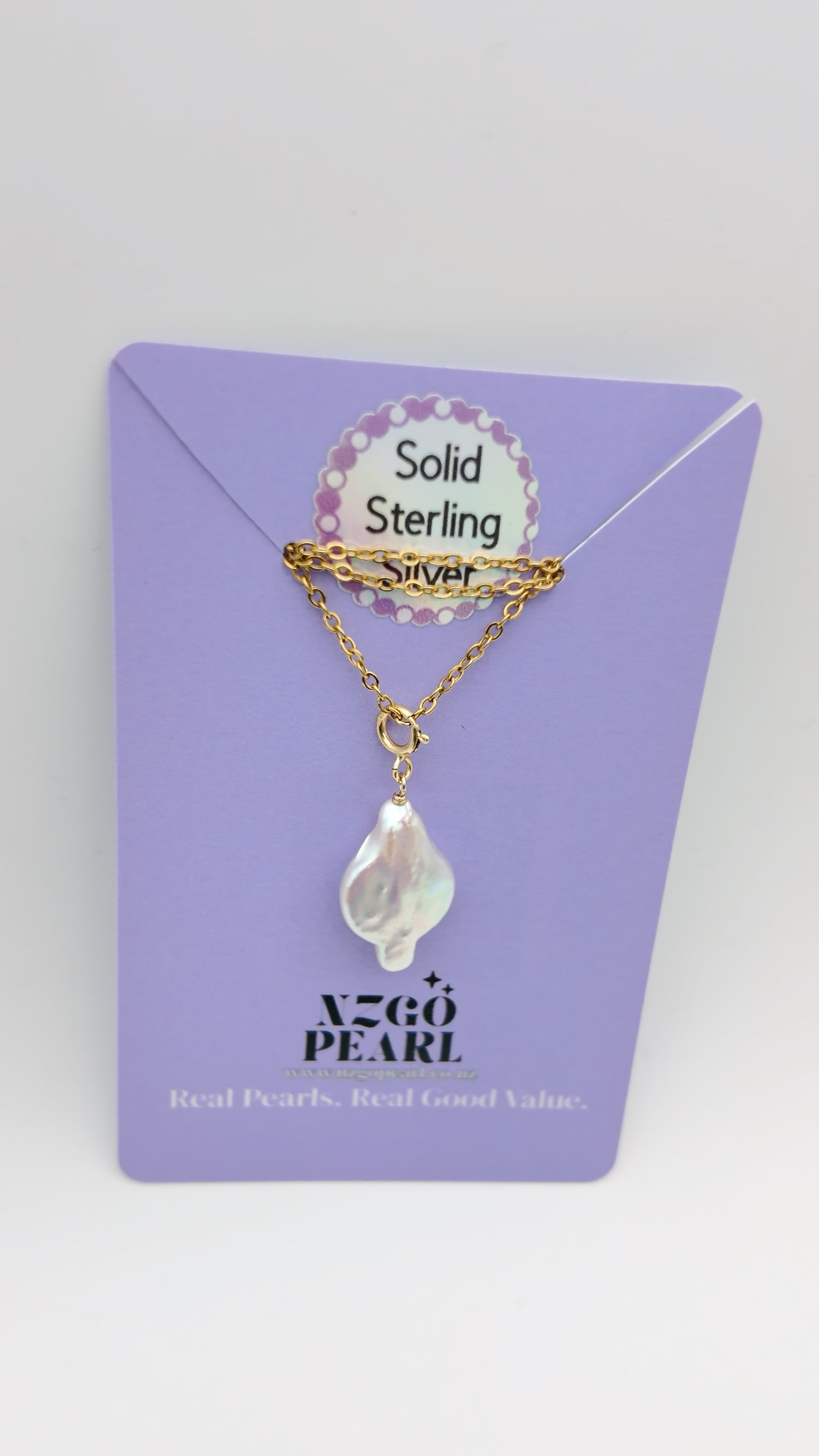 A striking baroque pearl charm featuring a solid sterling silver clasp, showcasing natural curves and organic lustre. Each pearl is individually shaped by nature, giving this charm its own distinctive character — no two pieces are the same.