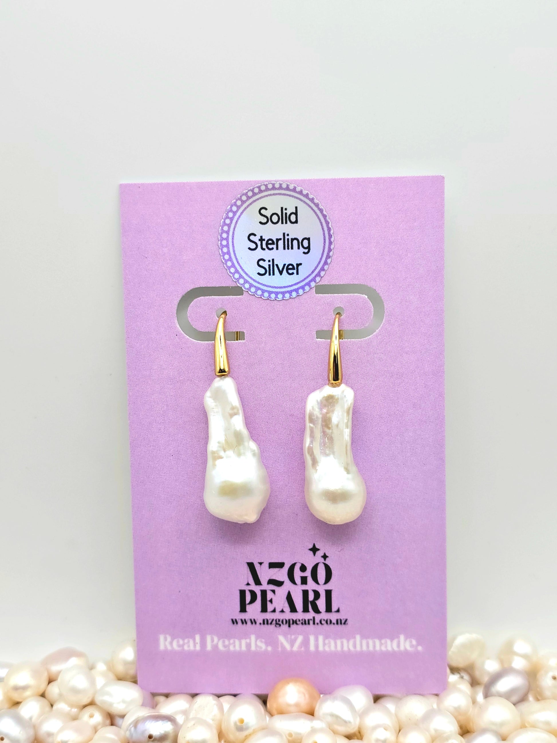 Natural drama, effortless style ✨ These striking drop earrings feature large, uniquely shaped baroque pearls suspended from sleek, gold-plated solid sterling silver hooks. Each pearl is one of a kind, making every pair truly unique — perfect for those who love statement jewellery with organic charm.