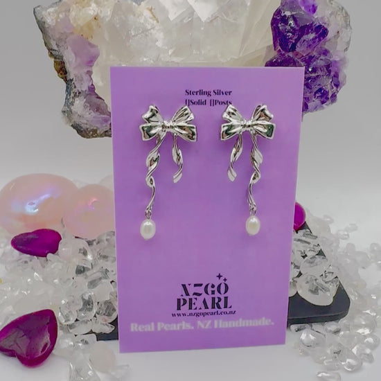 A bow to beauty 🎀✨ These sterling silver ribbon earrings end in a real pearl drop – the perfect balance of playfulness and elegance. Handmade in NZ, made to last.