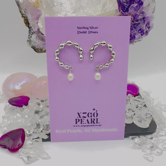 Modern meets marine 🌊 Our Ripple Halo Pearl Earrings combine sculptural silver with real freshwater drops. Fluid, bold, and effortlessly wearable.