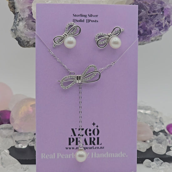 This silver bow pearl set adds sparkle and softness with CZ accents and real pearls. A lovely gift for yourself or someone special 💝