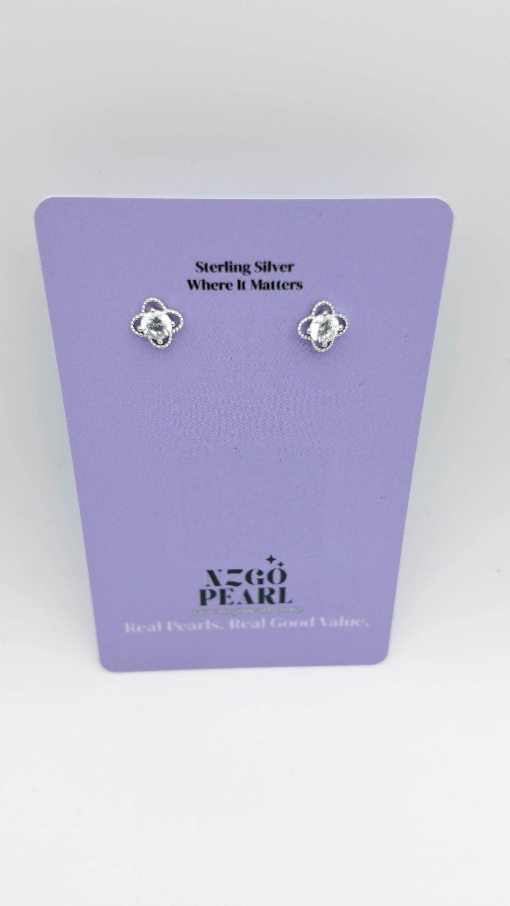Delicate and light-catching, these studs feature a softly faceted central crystal framed by a four-petal outline. The beaded silver detailing gives them a floral, vintage-inspired charm—simple enough for everyday wear, yet pretty enough to elevate any look.