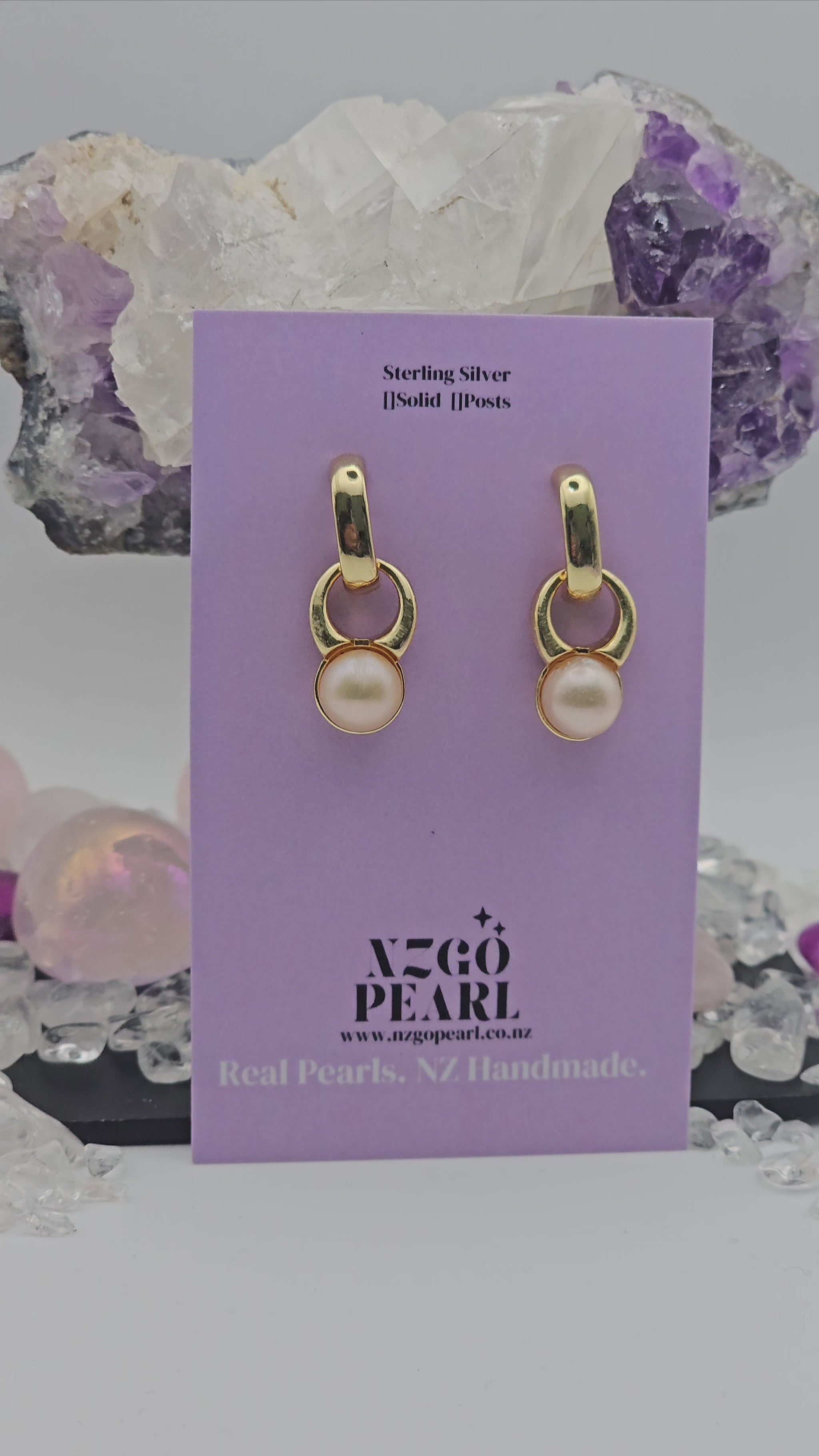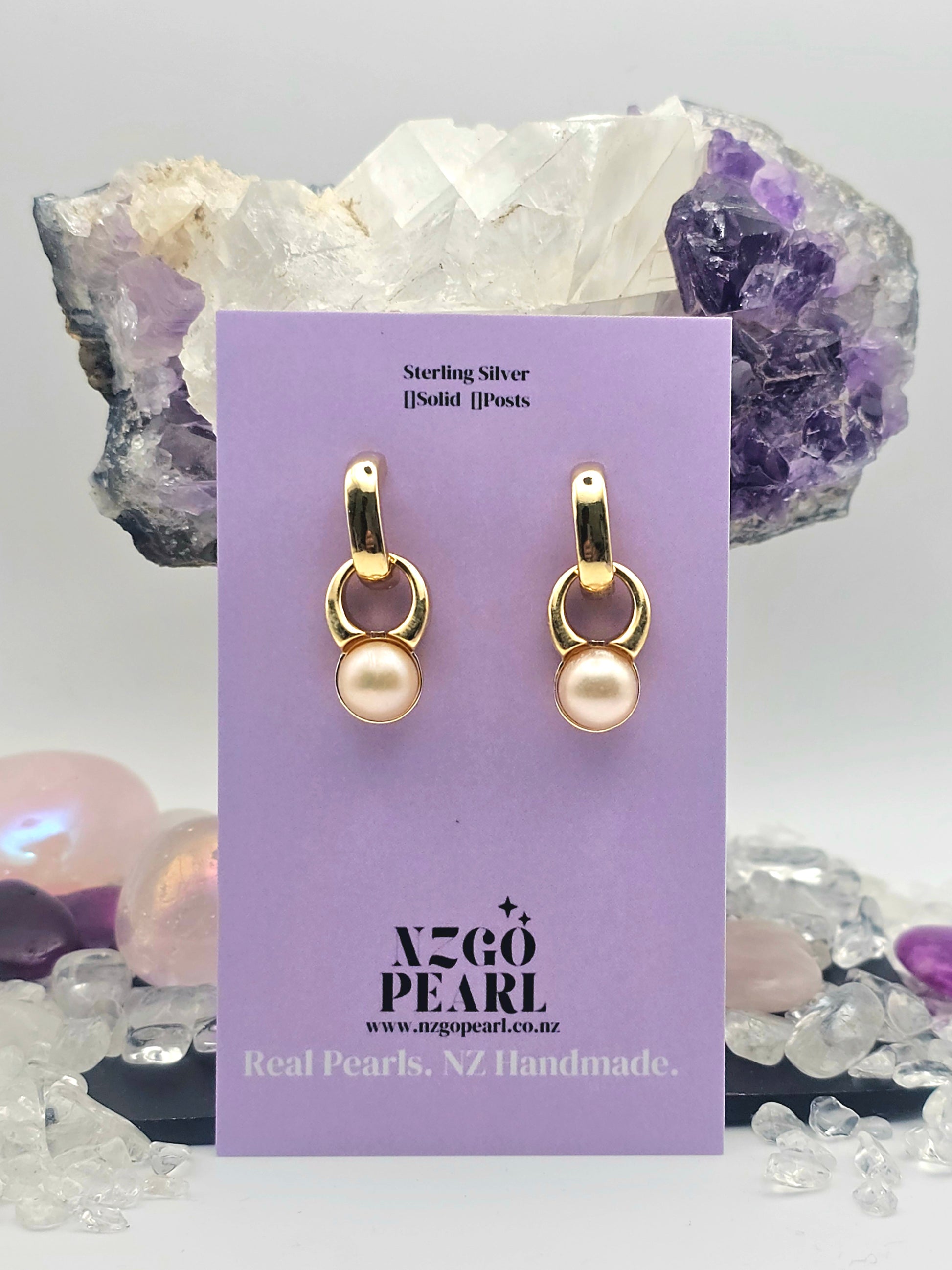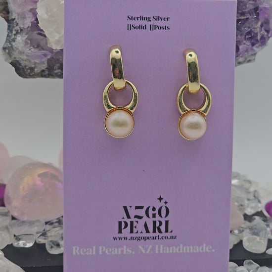 These hoop drop earrings feature a warm-toned freshwater pearl set in a smooth gold finish. A must-have for minimalists who still love a little glow.