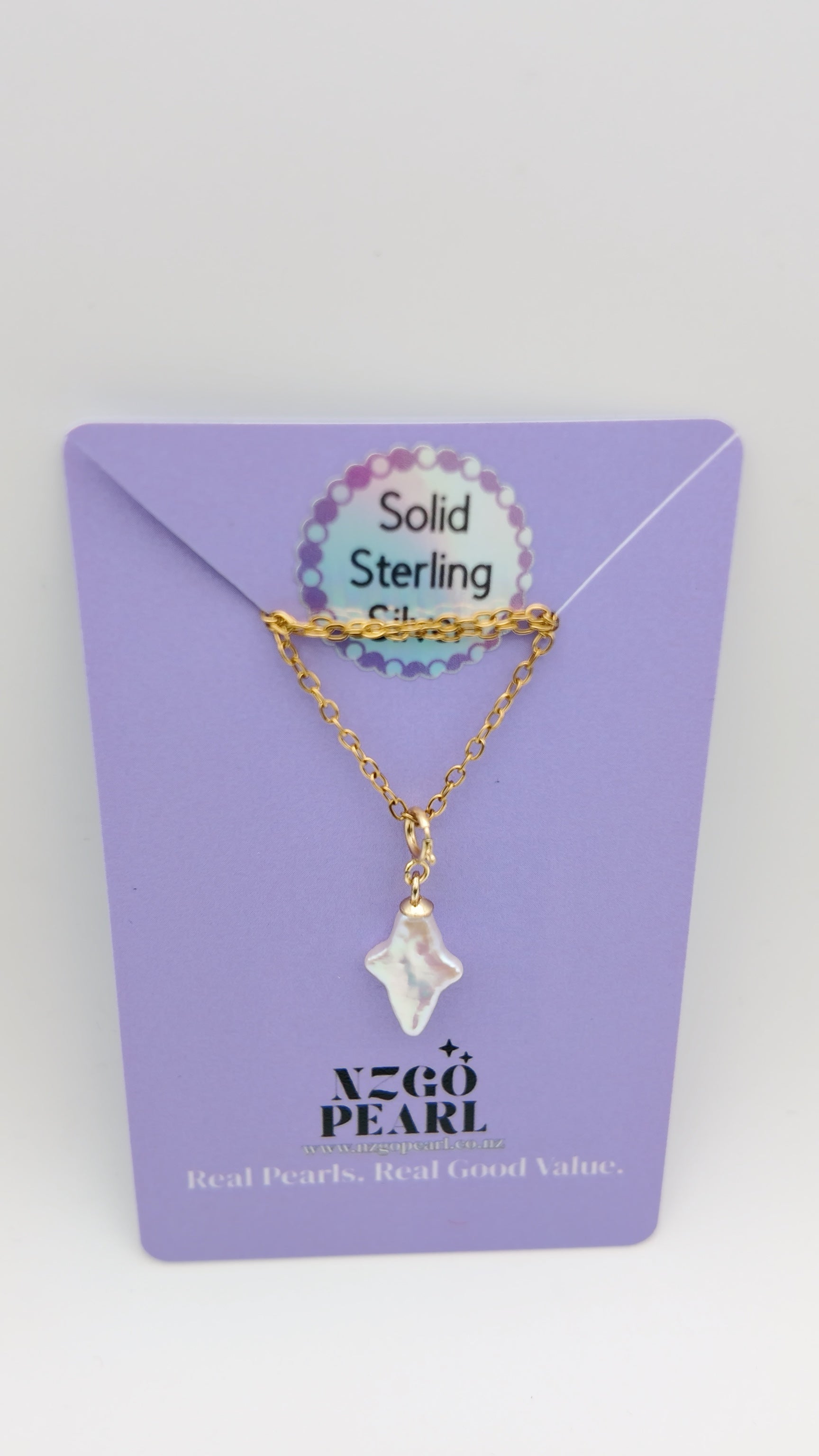 A beautifully unique star-shaped baroque pearl with soft natural lustre and an organic silhouette that makes every piece truly one-of-a-kind. Finished with a solid sterling silver clasp, this charm is perfect for adding a touch of individuality to your favourite necklace or bracelet.