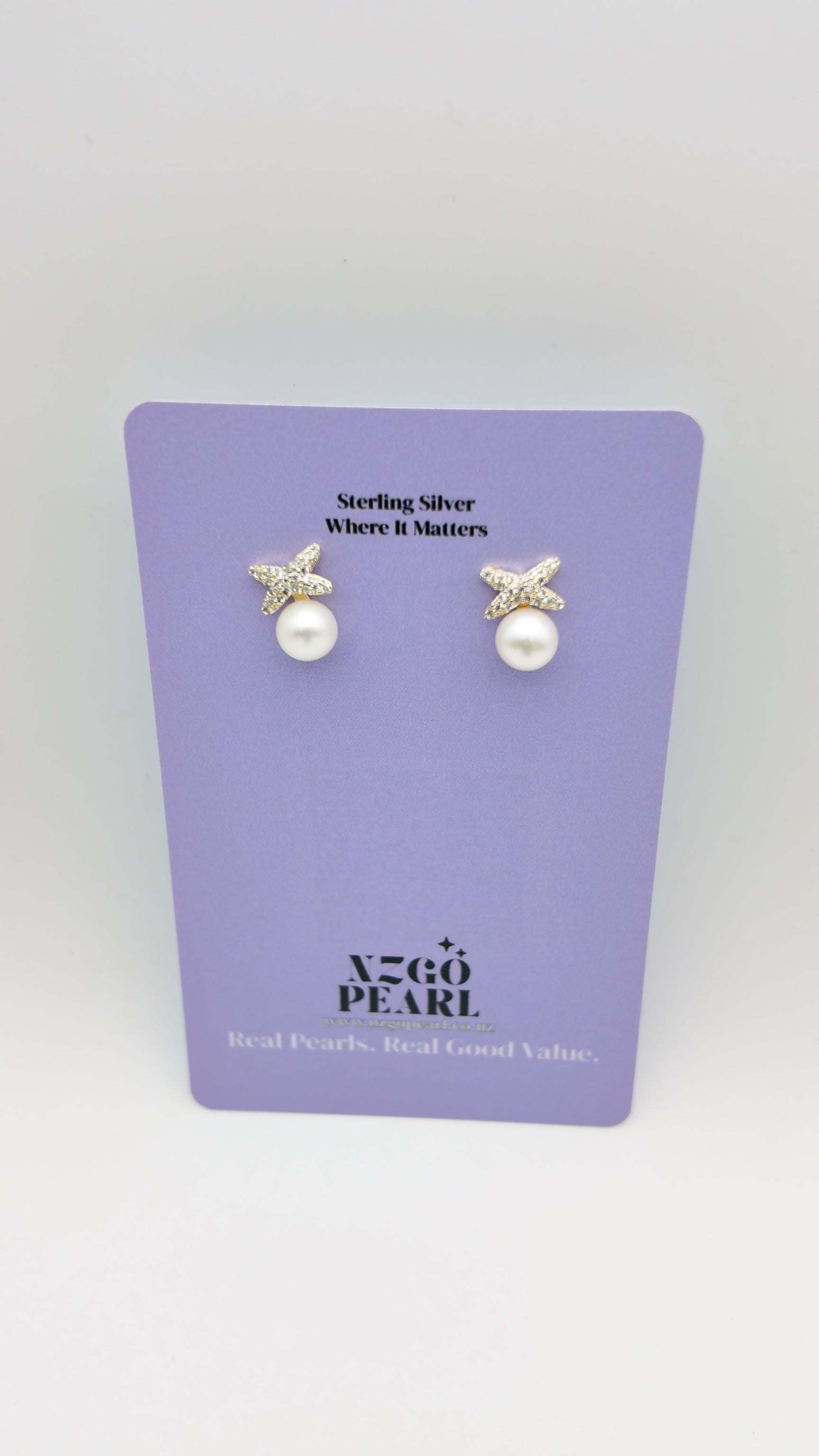 A playful coastal-inspired stud that pairs a sparkling crystal-set starfish with a smooth, luminous freshwater pearl. These earrings bring a touch of beachside charm while still feeling refined enough for everyday wear or gifting.