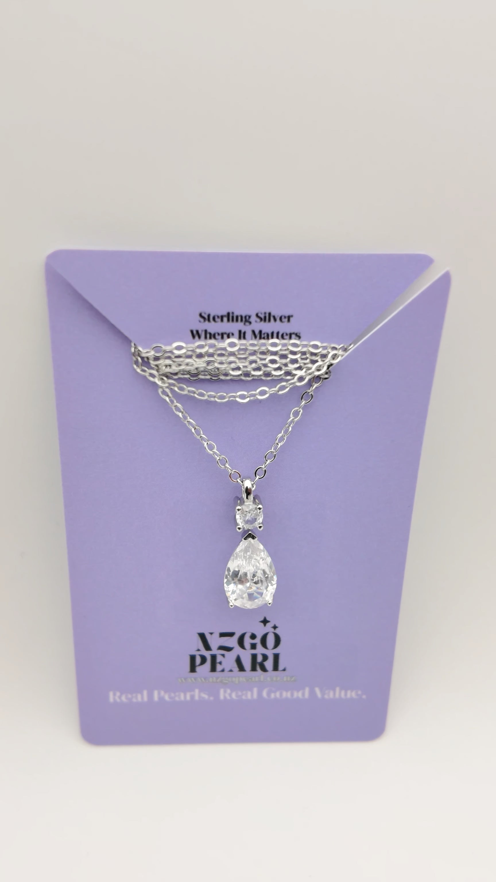This elegant pendant necklace features a clear teardrop-cut stone suspended from a fine silver-tone chain. The simple drop design catches the light beautifully, creating a clean sparkle that feels refined rather than flashy.