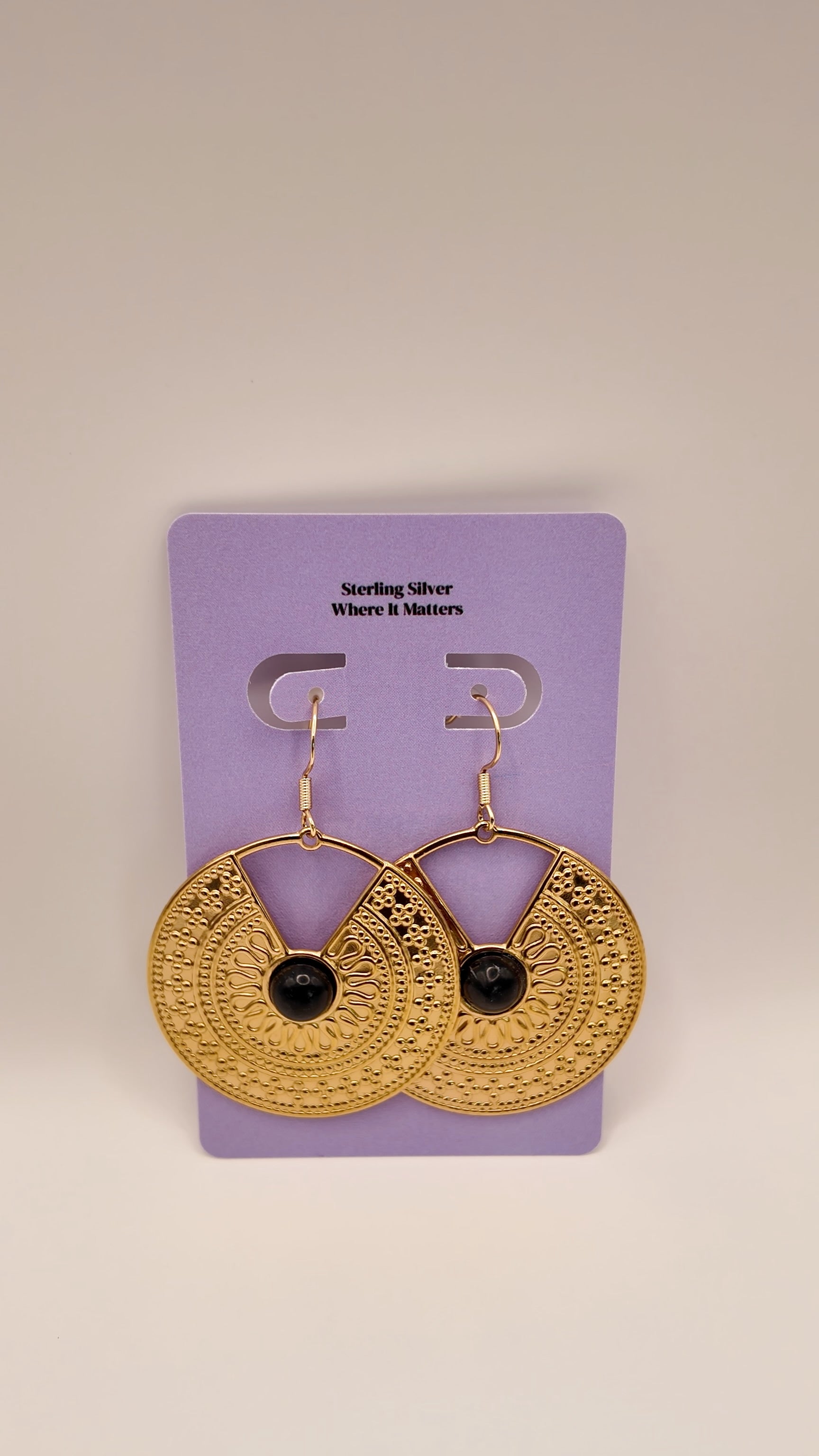 Materials: Gold-plated alloy, black bead, solid sterling silver hooks.